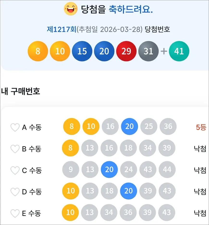 로또 1217회 당첨 5등 1장
